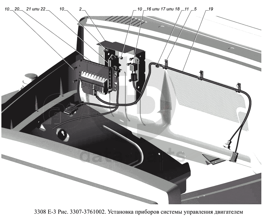 3307-3761002. Установка приборов системы управления двигателем ГАЗ-3308 (доп. с дв. ЗМЗ Е 3)