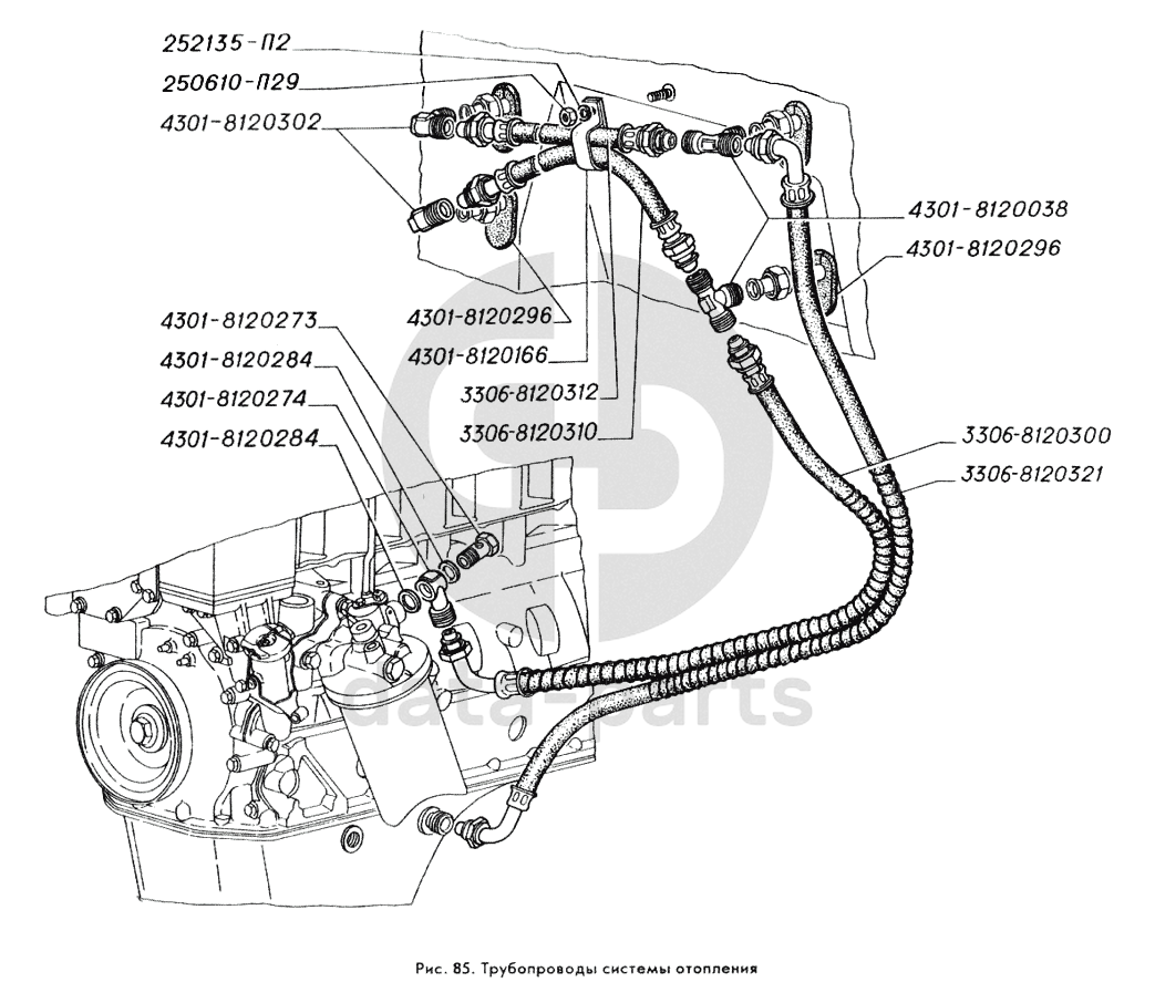 Трубопроводы системы отопления ГАЗ-3309