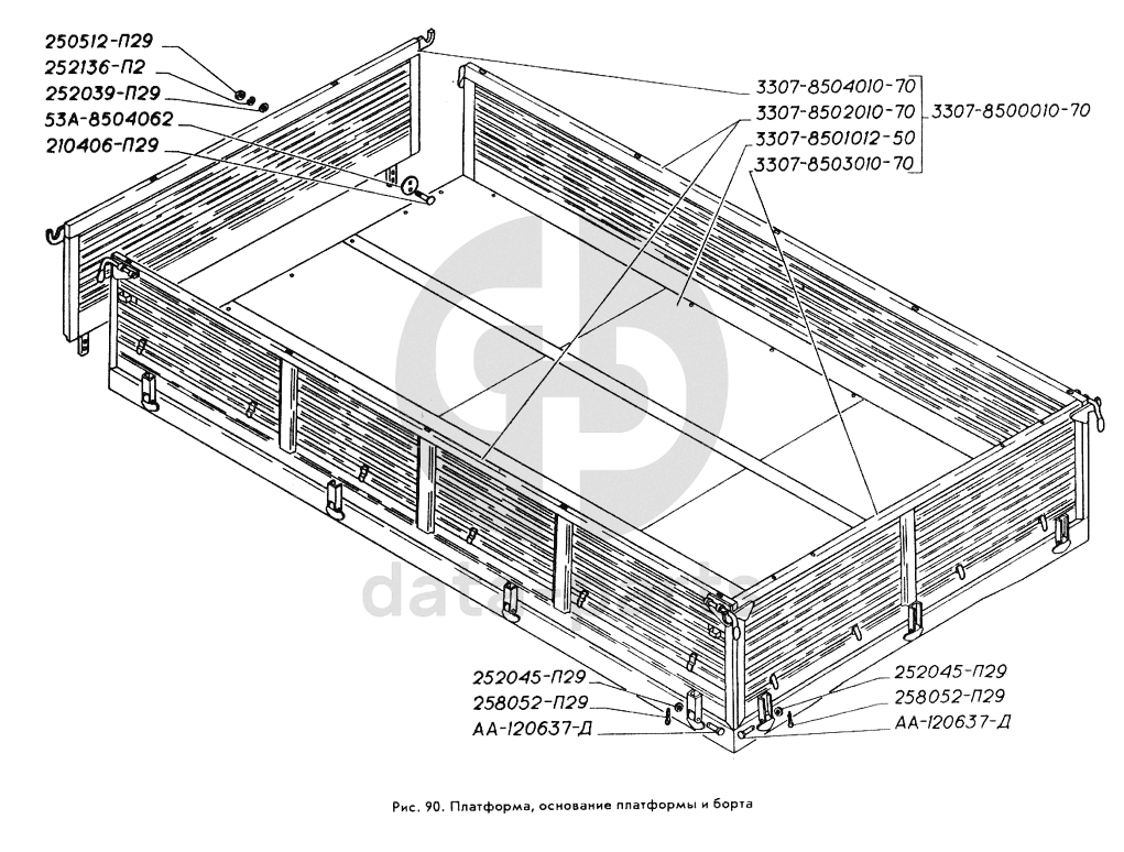 Платформа, основание платформы и борта ГАЗ-3309
