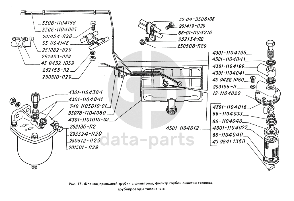 Фланец приемной трубки с фильтром, фильтр грубой очистки топлива, трубопроводы топливные ГАЗ-3309