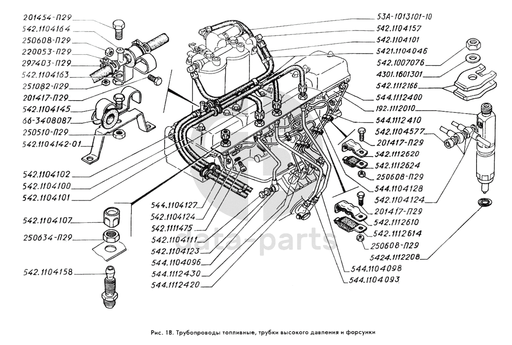 Трубопроводы топливные, трубки высокого давления и форсунки ГАЗ-3309