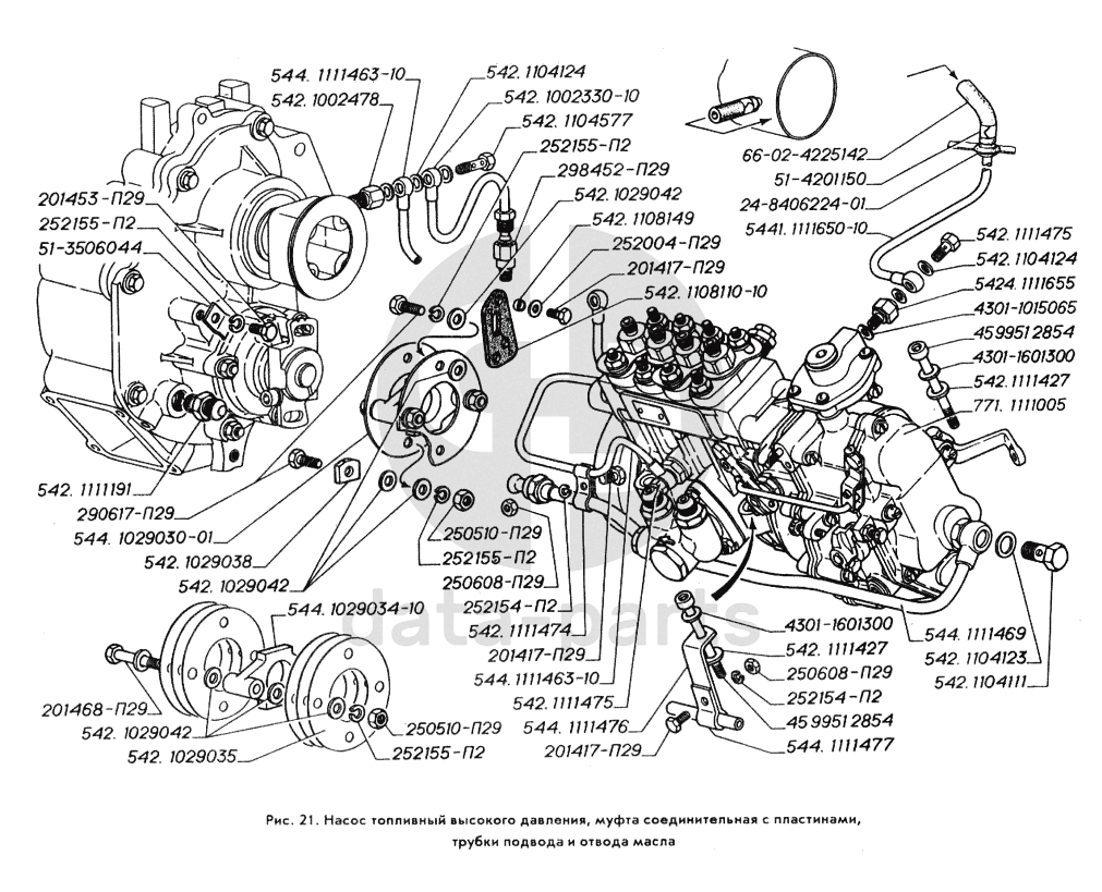 Насос топливный высокого давления, муфта соединительная с пластинами, трубки подвода и отвода масла ГАЗ-3309