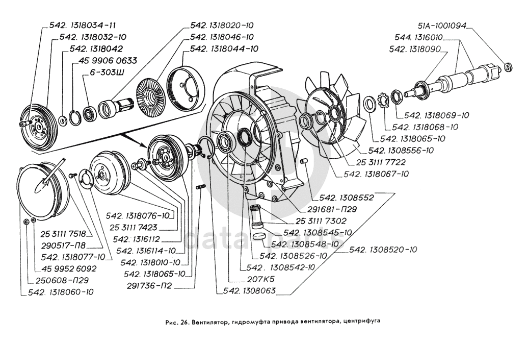 Вентилятор, гидромуфта привода вентилятора, центрифуга ГАЗ-3309