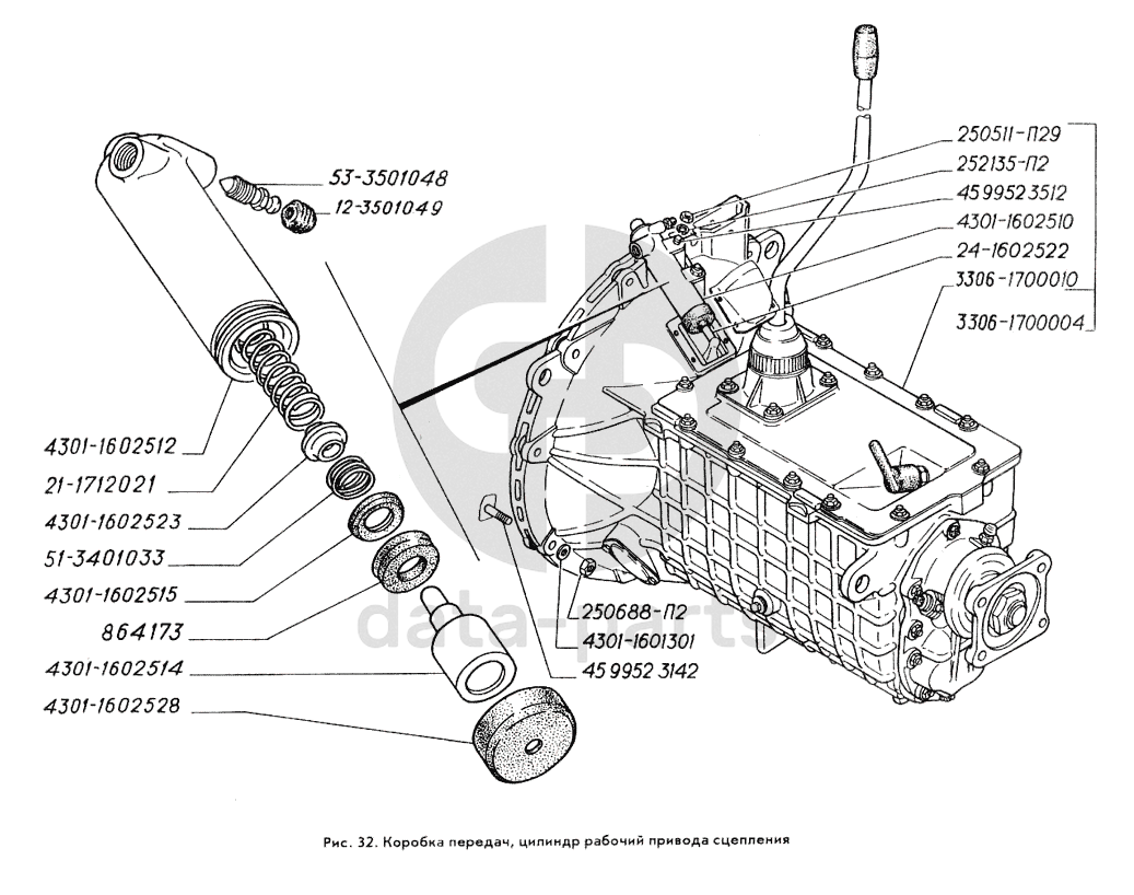 Коробка передач, цилиндр рабочий привода сцепления ГАЗ-3309