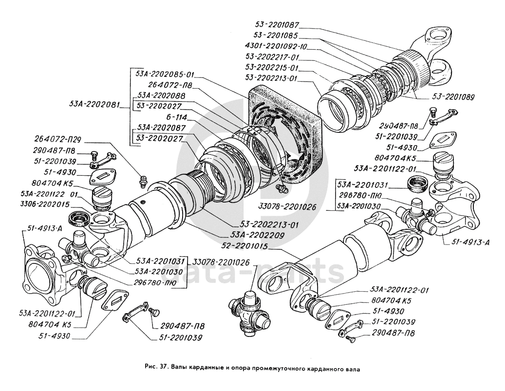 Валы карданные и опора промежуточного карданного вала ГАЗ-3309