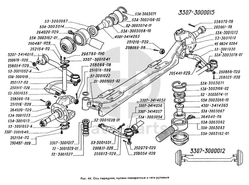 Ось передняя, кулаки поворотные и тяги рулевые ГАЗ-3309