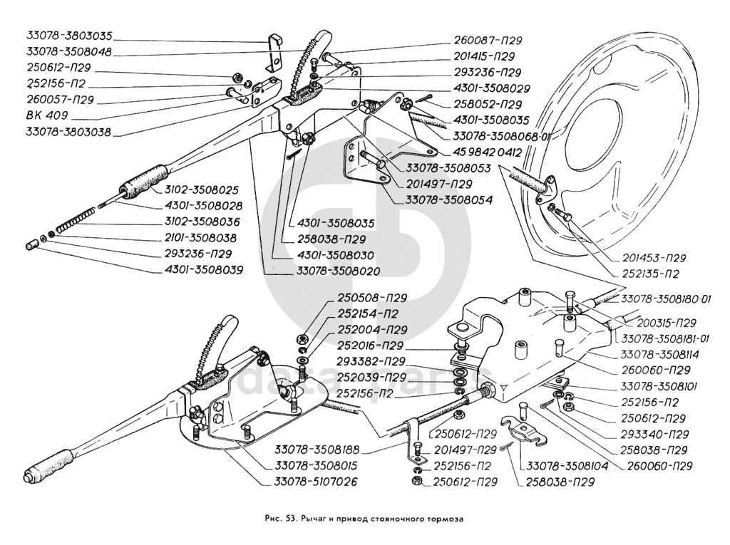 Рычаг и привод стояночного тормоза ГАЗ-3309