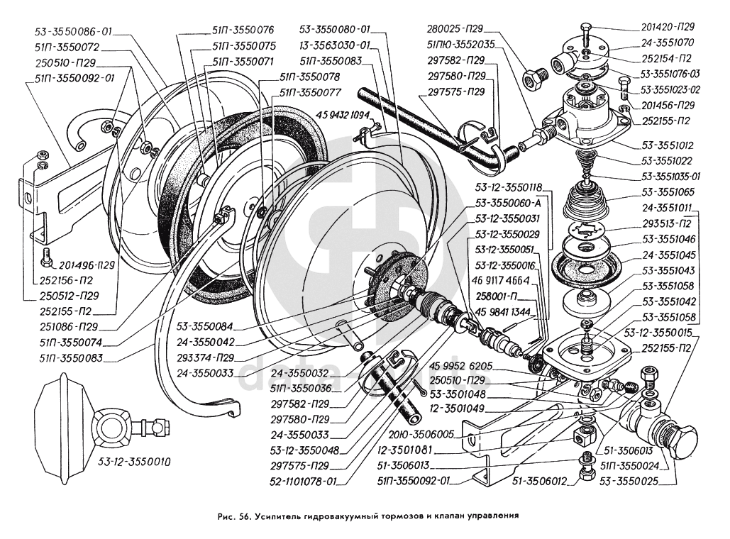 Усилитель гидровакуумный тормозов и клапан управления ГАЗ-3309