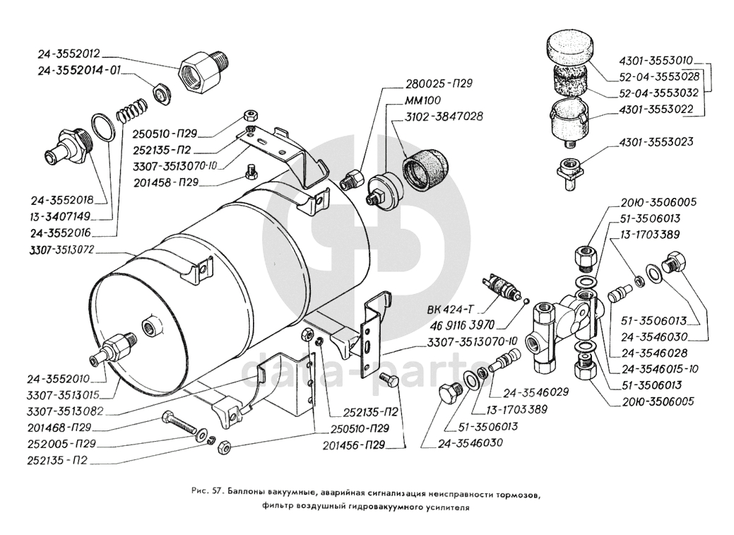 Баллоны вакуумные, аварийная сигнализация неисправности тормозов, фильтр воздушный гидровакуумного усилителя ГАЗ-3309