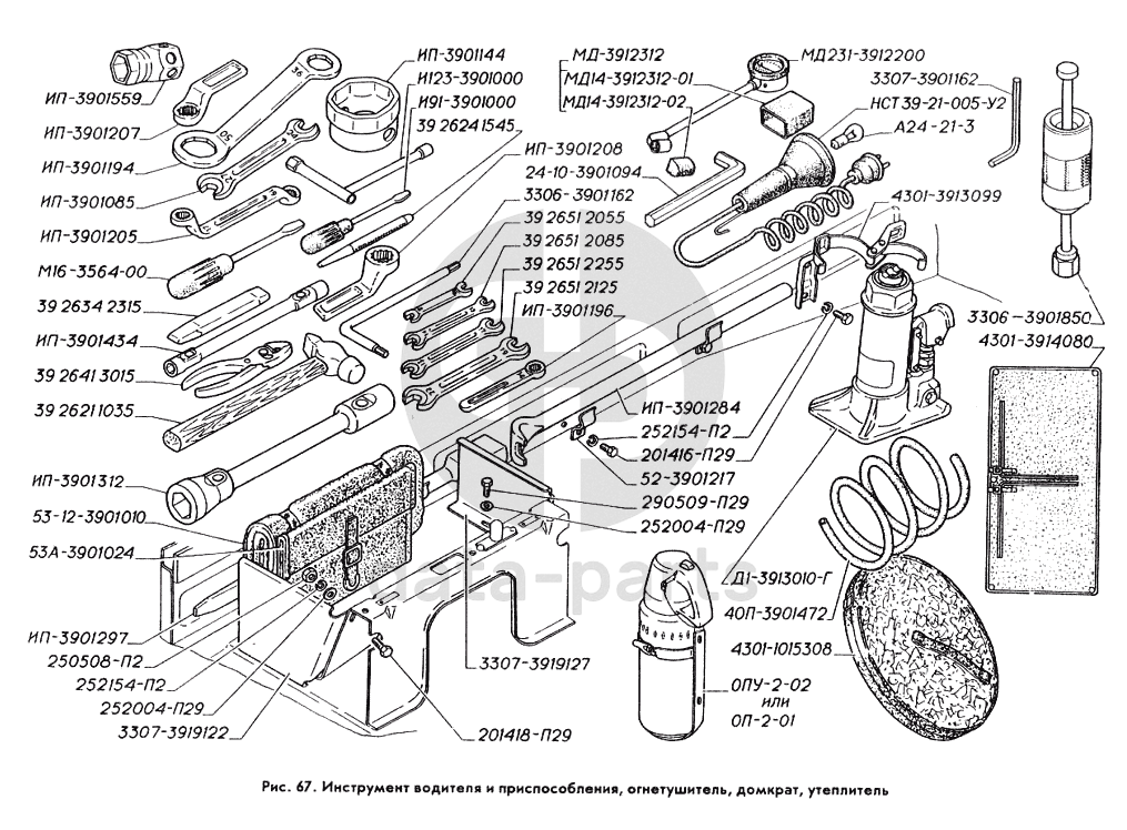 Инструмент водителя и приспособления, огнетушитель, домкрат утеплитель ГАЗ-3309