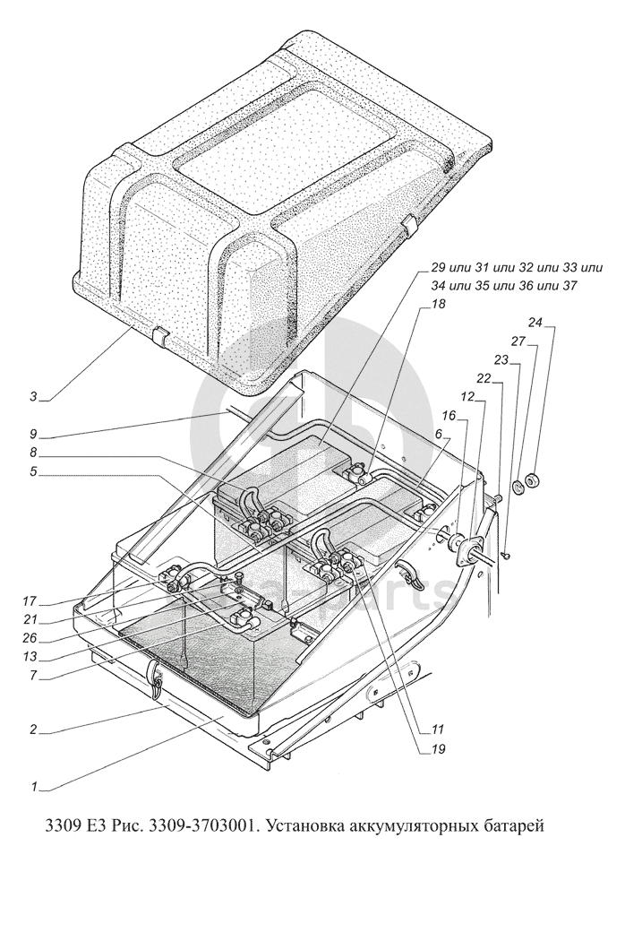 3309-3703001. Установка аккумуляторных батарей ГАЗ-3309 (доп. с дв. ЗМЗ Е 3)