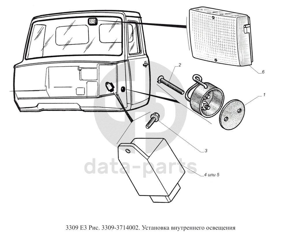 3309-3714002. Установка внутреннего освещения ГАЗ-3309 (доп. с дв. ЗМЗ Е 3)