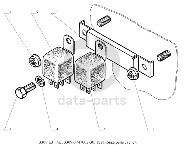 3309-3747002-30. Установка реле свечей ГАЗ-3309 (доп. с дв. ЗМЗ Е 3)
