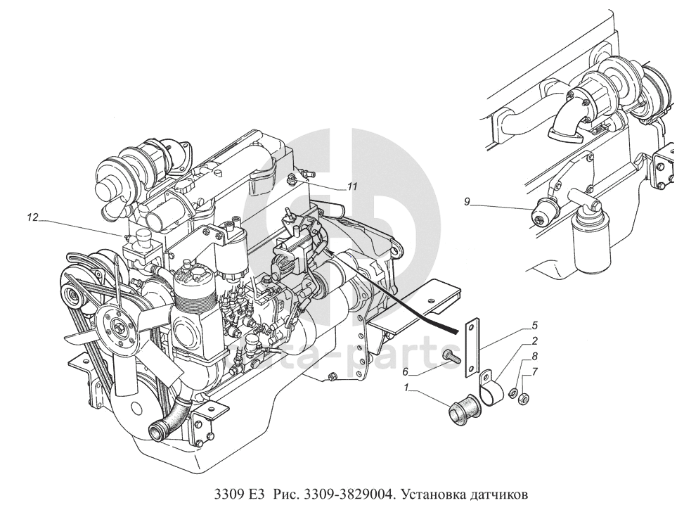 3309-3829004. Установка датчиков ГАЗ-3309 (доп. с дв. ЗМЗ Е 3)