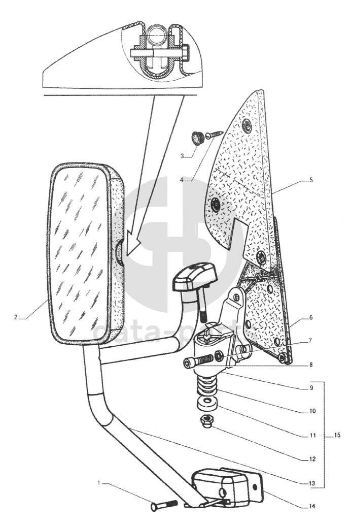 Зеркало заднего вида, стойка зеркала с опорой, кожух опоры ГАЗ-33104 Валдай