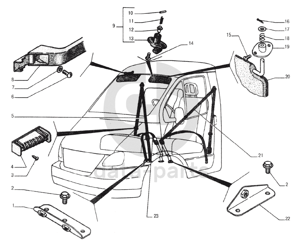 Ремни безопасности, поручень, козырьки противосолнечные с кронштейнами ГАЗ-33104 Валдай