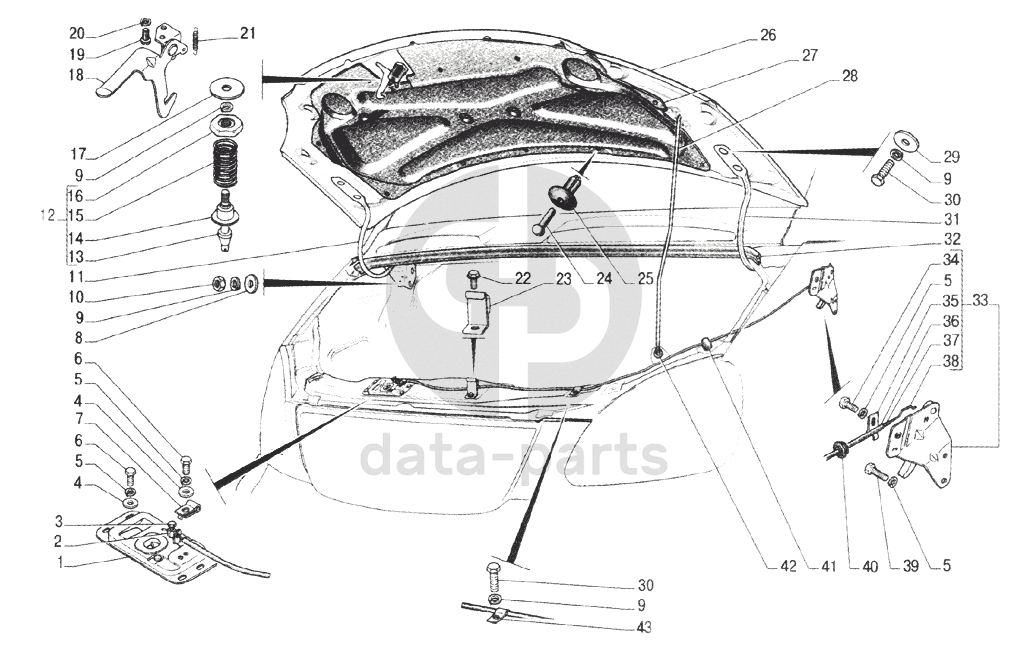 Капот с арматурой, замок капота и его привод ГАЗ-33104 Валдай