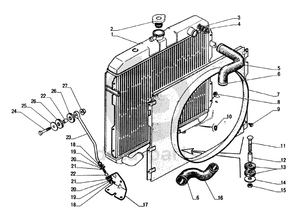 Установка системы охлаждения, радиатор ГАЗ-33104 Валдай