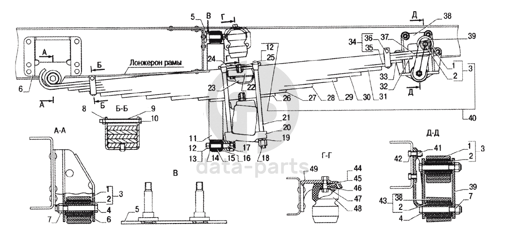Установка задней подвески, рессора задняя, амортизатор ГАЗ-33104 Валдай