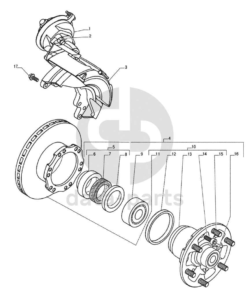 Ступица переднего колеса с тормозным диском, тормозной механизм ГАЗ-33104 Валдай