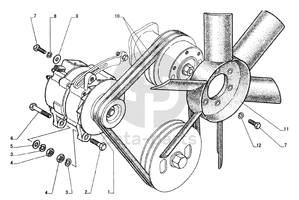 Установка генератора, вентилятор и приводные ремни ГАЗ-33104 Валдай