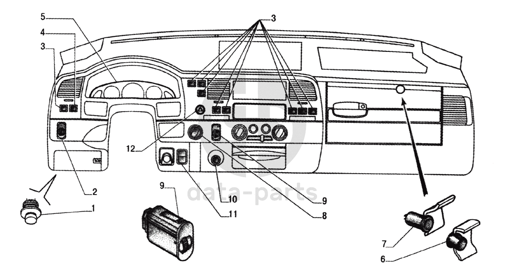 Органы управления на панели приборов, комбинация приборов ГАЗ-33104 Валдай