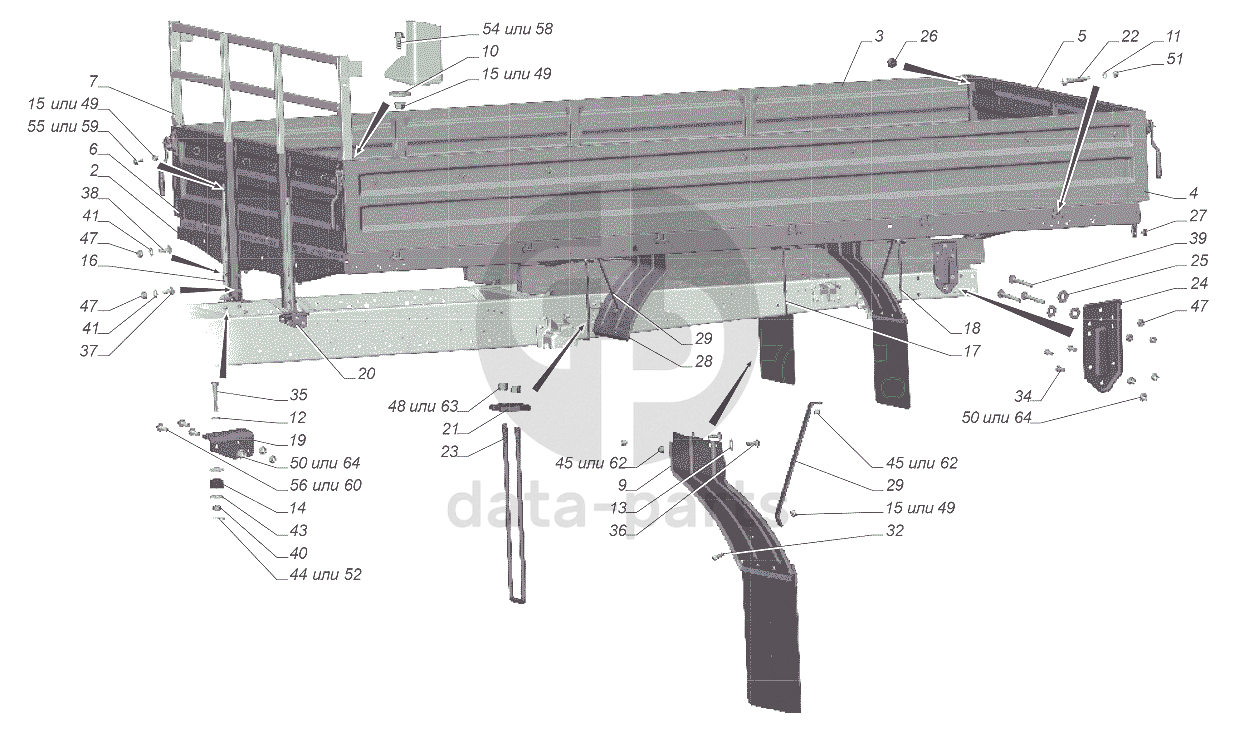 С41R11-8500076-10 Комплект деталей платформы и тента опция Платформа широкая и большие колеса ГАЗон NEXT C41R13-60