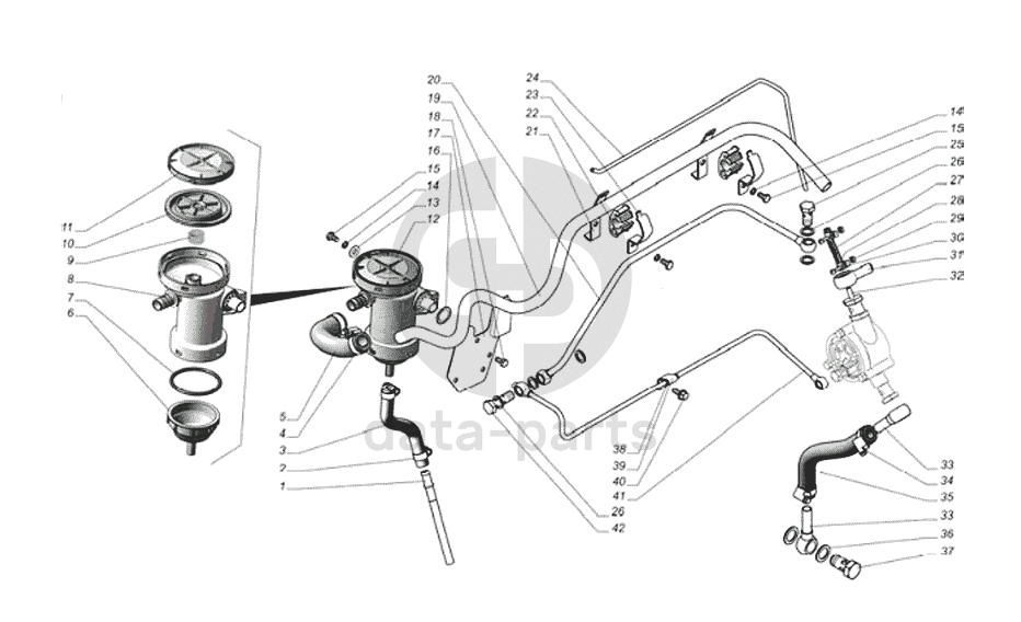 Система вентиляции картерных газов, маслопровод к турбокомпрессору и вакуумному насосу ГАЗ-560