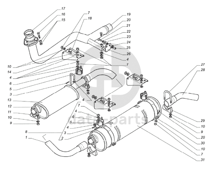 Глушитель, резонатор, трубы глушителя автомобиля ГАЗель с двигателем ГАЗ-560 ГАЗ-560