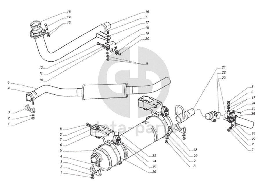 Глушитель, резонатор, труба выхлопная автомобиля Соболь с двигателем ГАЗ-5602 ГАЗ-560