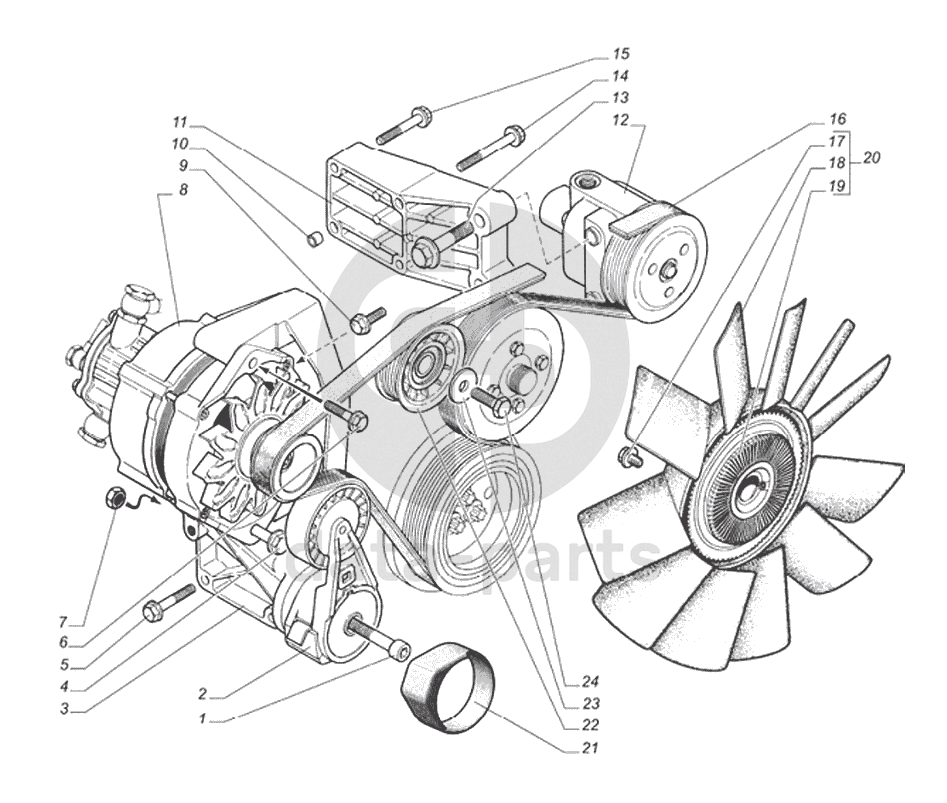 Генератор с вакуумным насосом, насос рулевого гидроусилителя, привод навесных агрегатов ГАЗ-560