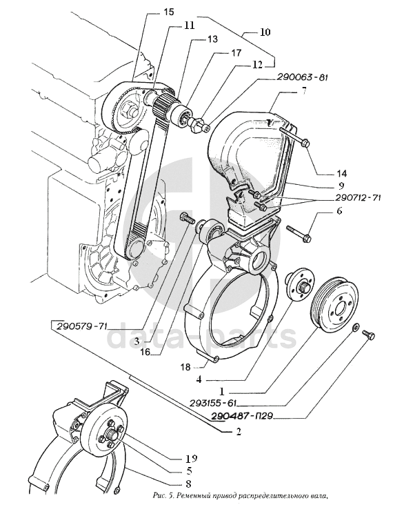 Ременный привод распределительного вала, крышки зубчатого ремня и опора вентилятора двигателя ГАЗ-560