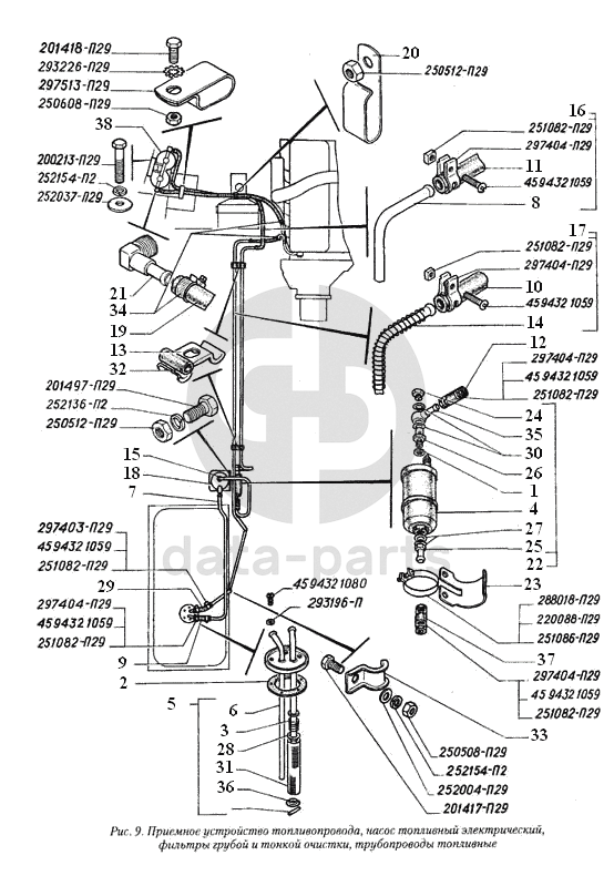 Приемное устройство топливопровода, насос топливный электрический, фильтры грубой и тонкой очистки, трубопроводы топливные ГАЗ-560