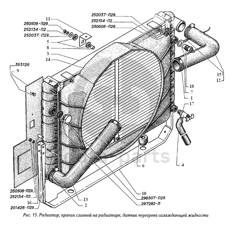 Радиатор, краник сливной на радиаторе, датчик перегрева охлаждающей жидкости ГАЗ-560