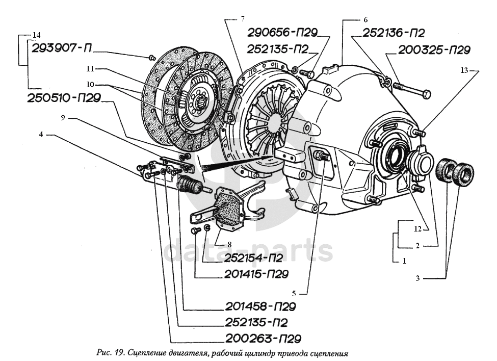 Сцепление, рабочий цилиндр привода сцепления ГАЗ-560