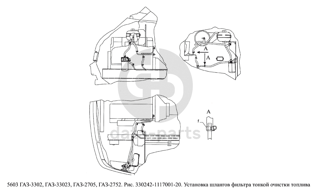 330242-1117001-20 Установка шлангов фильтра тонкой очистки топлива ГАЗ-5603 (Евро 4)